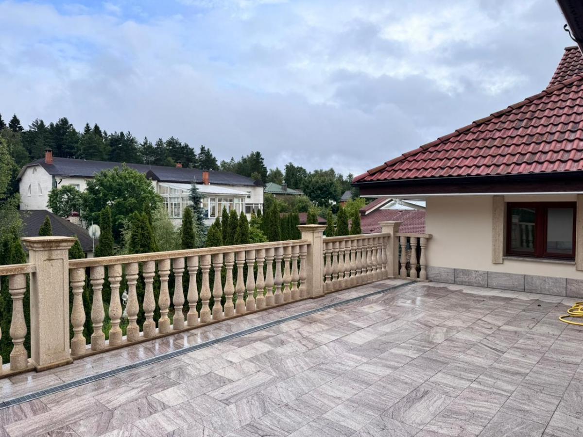 Красивая придомовая территория 30 соток , три гаража и домик для охраны при въезде.
