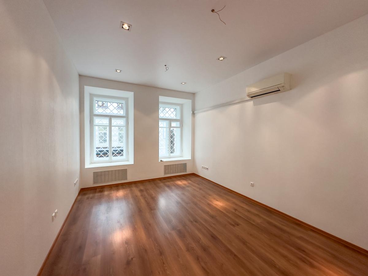 Помещение №2 (см.планировку). Площадь 18,5 м2. Высота потолка 3,1 м. Новый ремонт (обои под покраску, натяжной потолок, встроенные светильники, напольное ламинатное покрытие, стильная дверь). Кондиционер. Два окна выходят в тихий переулок. Скоростной интернет. Доступ 24/7.