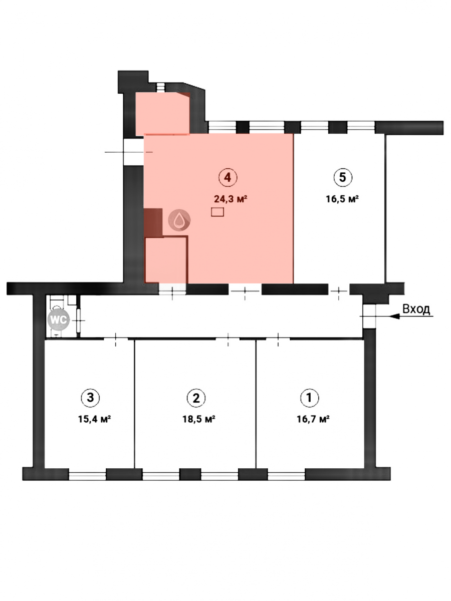 Помещение №4 (см.планировку). Площадь 24,3 м2. Высота потолка 3,1 м. Новый ремонт (обои под покраску, натяжной потолок, встроенные светильники, напольное ламинатное покрытие, стильная дверь). Кондиционер. Сдвоенное окно выходит в тихий двор. Есть возможность сделать мокрую точку (в настоящее время законсервирована). В дальней части маленькая комната для хранения и дополнительный выход во вдор. Скоростной интернет. Доступ 24/7.