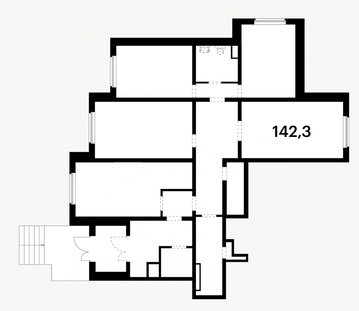 5 изолированных кабинетов с окнами, 1 без окна, 2 сан узла.
