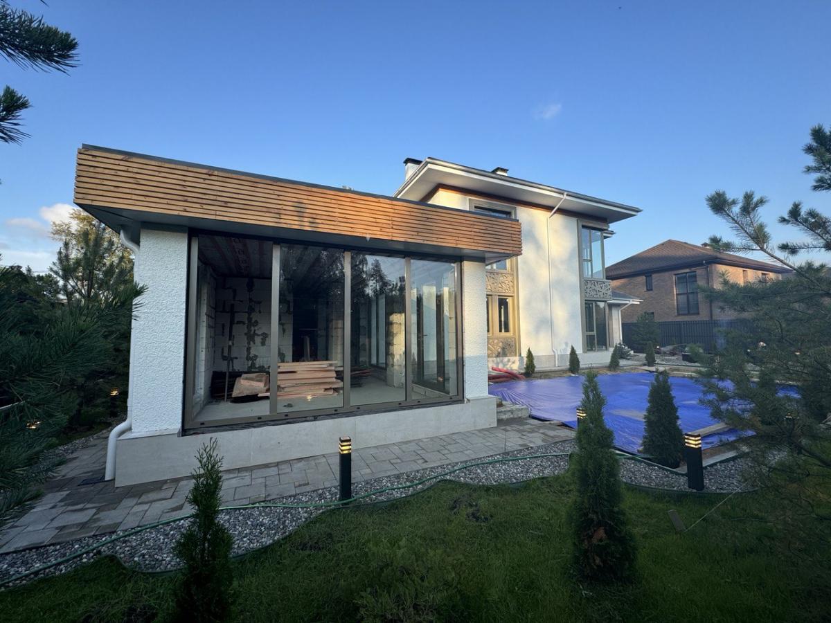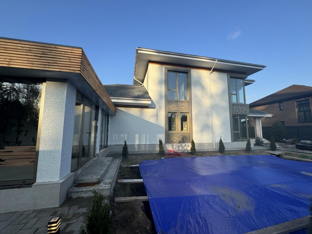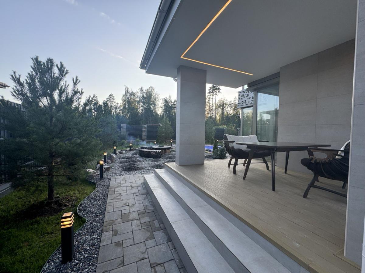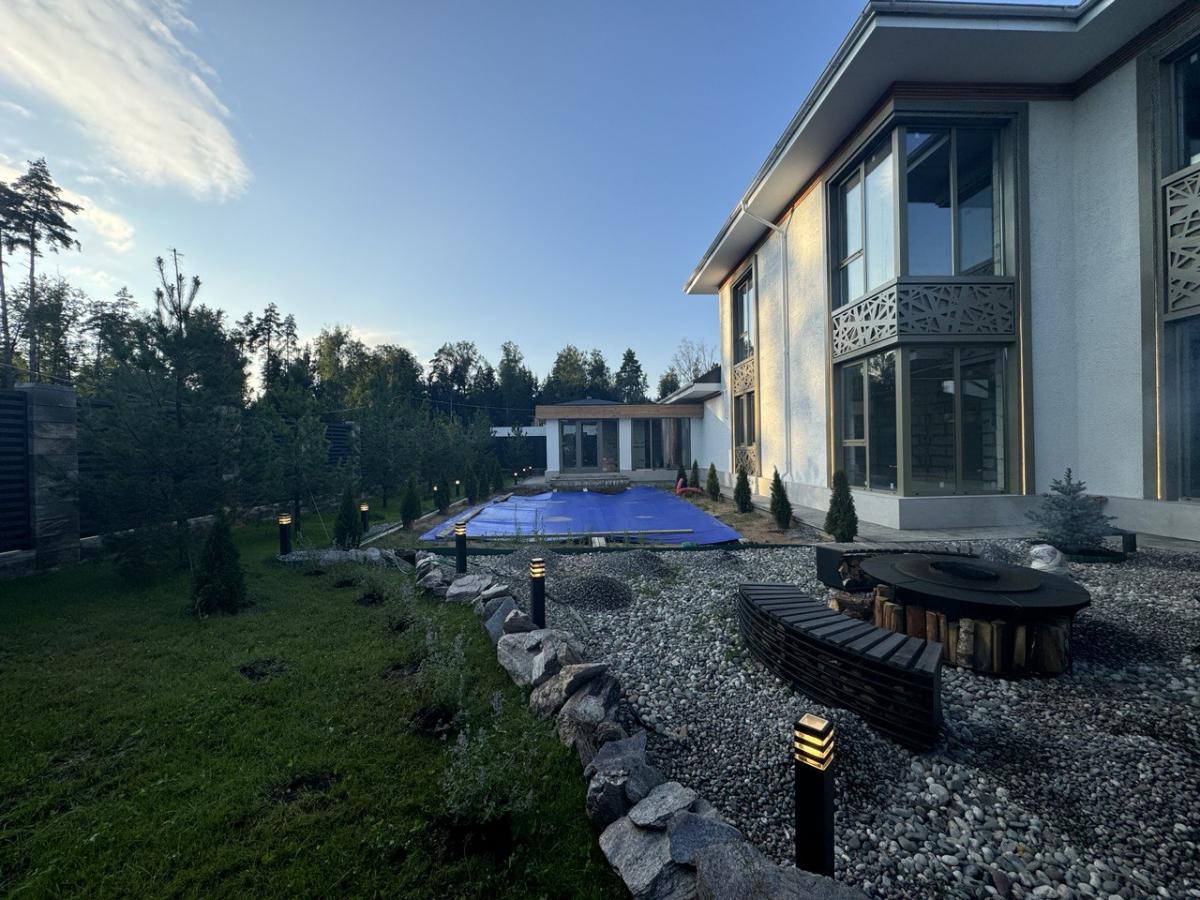 В объекте предусмотрен бассейн 8*4, финская сауна, джакузи, камин, открытый патио, зона открытого очага, гараж на 2 автомобиля, умный дом, приточно-вытяжная система.