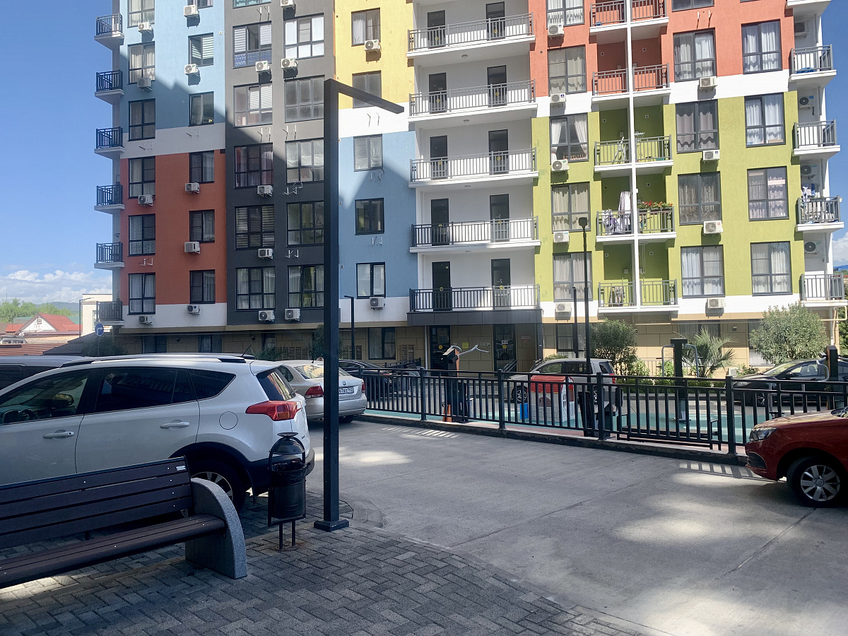 Комплекс комфорт-класса состоит из трех корпусов переменной этажности от 12 до 13 этажей в едином архитектурном стиле. Во дворе комплекса расположены детские и спортивные площадки, выполнено комплексное озеленение. Закрытая охраняемая территория под видеонаблюдением, предусмотрен гостевой и подземный паркинг. В собственности два парковочных места в подземном паркинге. Один из лучших ЖК в Адлере.
