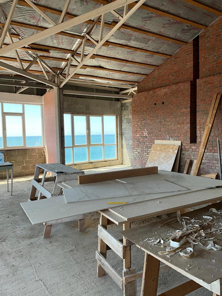Панорамные окна с видом на Черноморское побережье с одной стороны и Кавказские горы с другой . Свободная планировка и высокие потолки позволяет обустроить пространство именно так, как удобно Вам