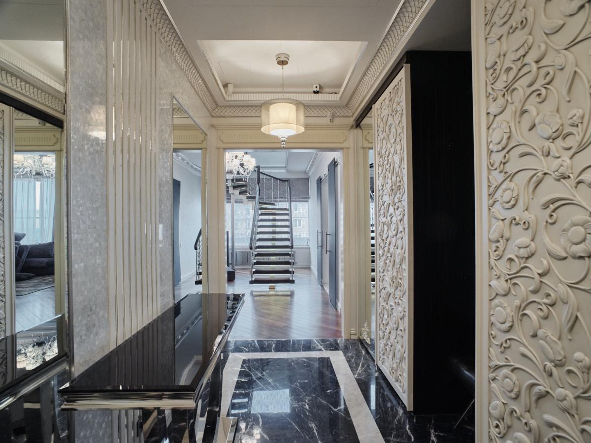 Продается двухуровневый пентхаус в ЖК "Миракс Парк". Светлая, красивая 7-ми комнатная квартира с дизайнерским ремонтом. На первом этаже расположены гостиная, кухня, столовая и прачечная, а также гостевой санузел. На втором этаже расположены мастер спальня 82 кв.м. и 3 большие комнаты, лаундж зона, две гардеробные. При каждой комнате имеется собственный санузел. Панорамная терраса позволяет увидеть весь Юго-Запад Москвы.