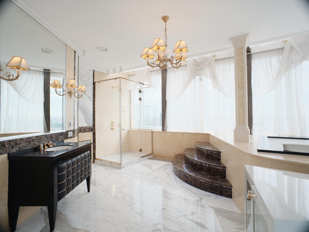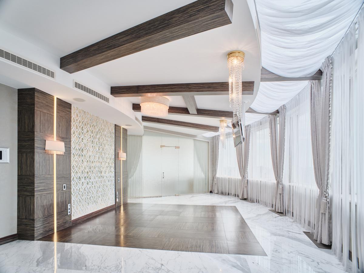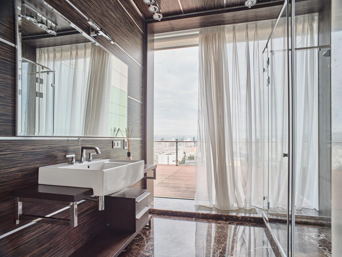 ЖК "Миракс Парк" находится на закрытой территории, без машин во дворе. Двойная охрана при въезде на территорию и при входе в подъезд обеспечивает безопасность проживания. Пентхаус расположен на приватном этаже, на который можно подняться по специальному пропуску. На этаже расположены всего три квартиры. Есть двухуровневый подземный паркинг.