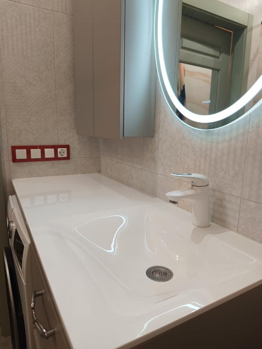 — выполнена функциональная перепланировка: в коридоре выделена ниша-гардеробная, а так же совмещен санузел, отдельные жилые комнаты, кухня-гостинная;