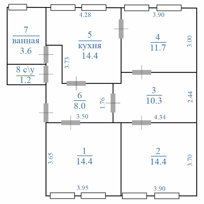 Предлагаем Вашему вниманию 3 комнатную квартиру, расположенную на 1 этаже.