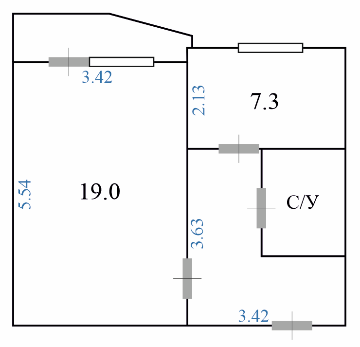 Комната 19 кв.м. Кухня 7,3 кв.м.