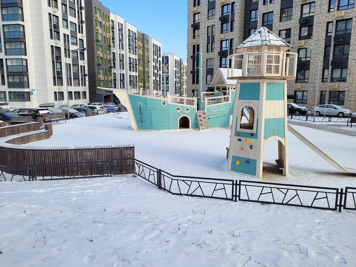 В ЖК есть многоярусный паркинг, школы, детсады, магазины у дома и спортплощадки.
