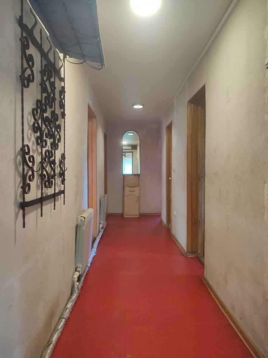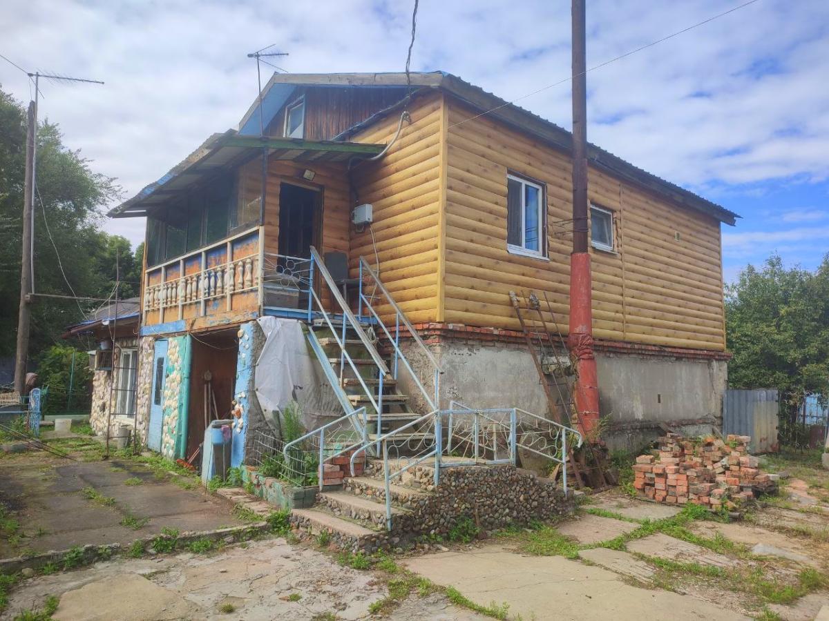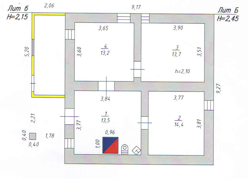 Первый этаж - кирпичный, состоит из котельной, мастерской и двух кладовых. Все помещения с окнами.