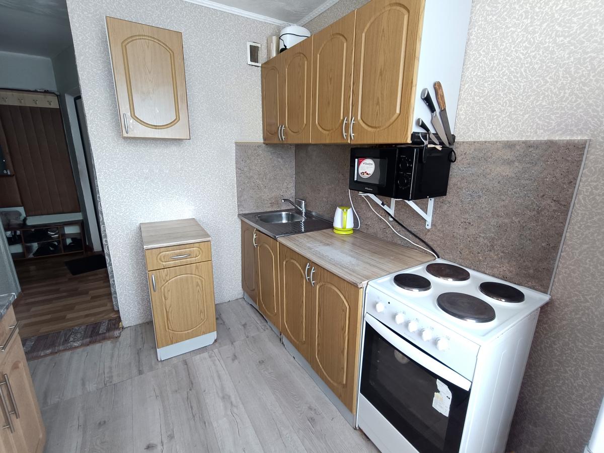 Кухня поделена на две комфортные уютные зоны. Из нашей комнаты выход на 6-ти метровую остекленную лоджию. Места общего пользования поддерживаются в чистом состоянии. Соседи приличные, дружелюбные. В собственности более 5 лет.