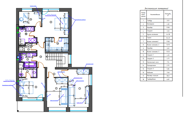 2 этаж : Мастер спальня с ванной комнатой, кабинетом, гардеробной и балконом, три спальни (одна с балконами и собственным туалетом), общий С/У с ванной и