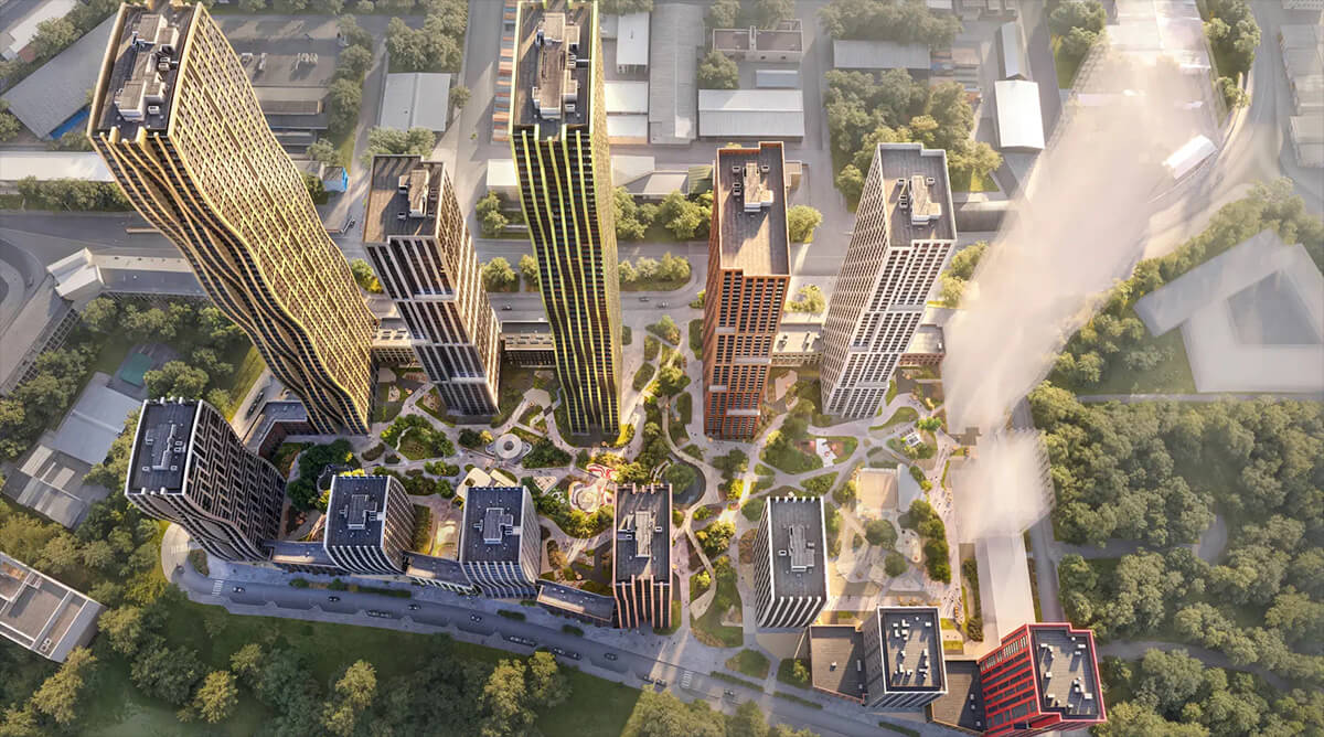 Жилой комплекс комфорт-класса расположен в районе Печатники в 10 минутах пешком от станции метро «Кожуховская». Поблизости крупные парки, набережная и другие места отдыха. Проектом предусмотрен закрытый внутренний двор с 2 га благоустройства, спортивными и детскими площадками. Собственный торговый центр, школа, детский сад, фитнес и другие сервисы на территории. Из окон башен высотностью до 69 этажей открываются виды на Москву-реку и парки.