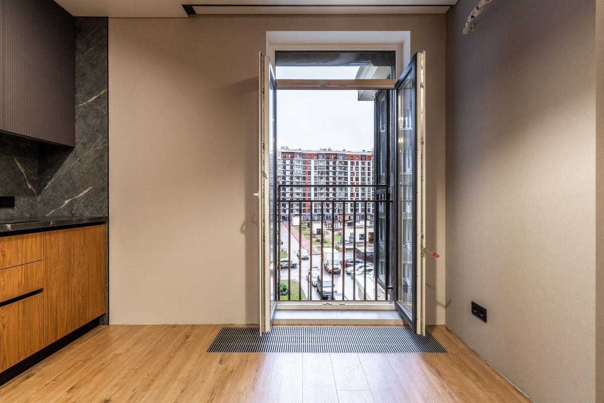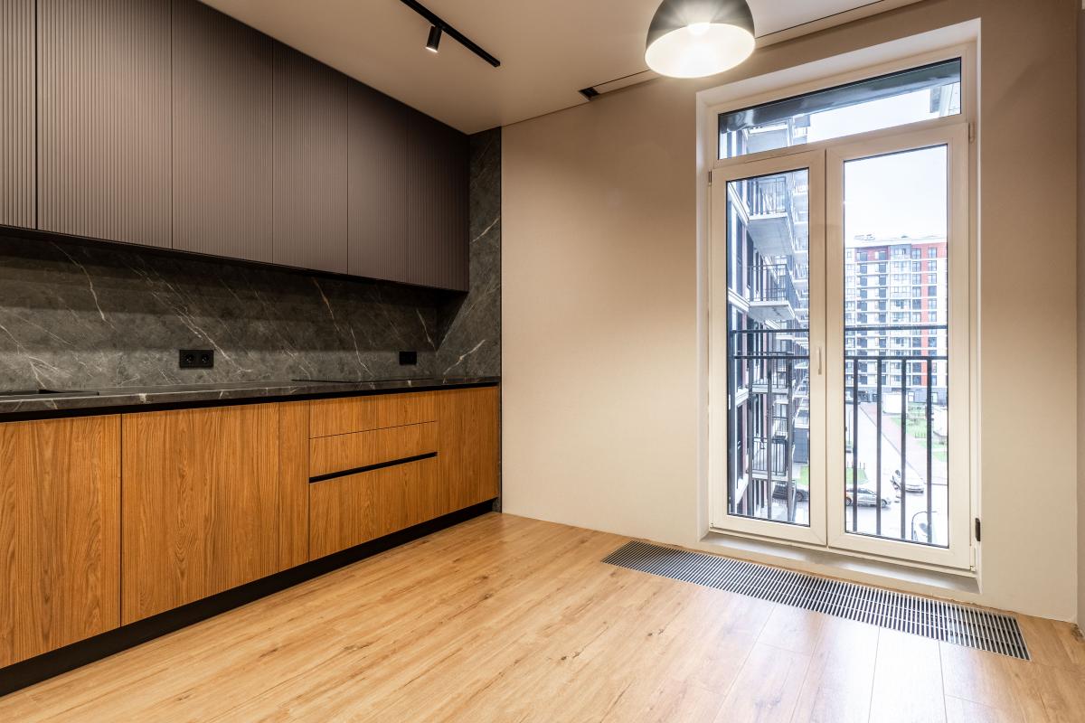 - Уютная и функциональная кухня с французским окном;