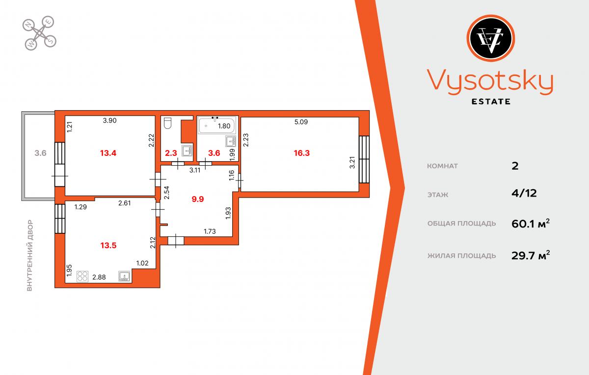 - Изолированные комнаты 13.5 и 16.3 ( с видом во двор и на улицу)